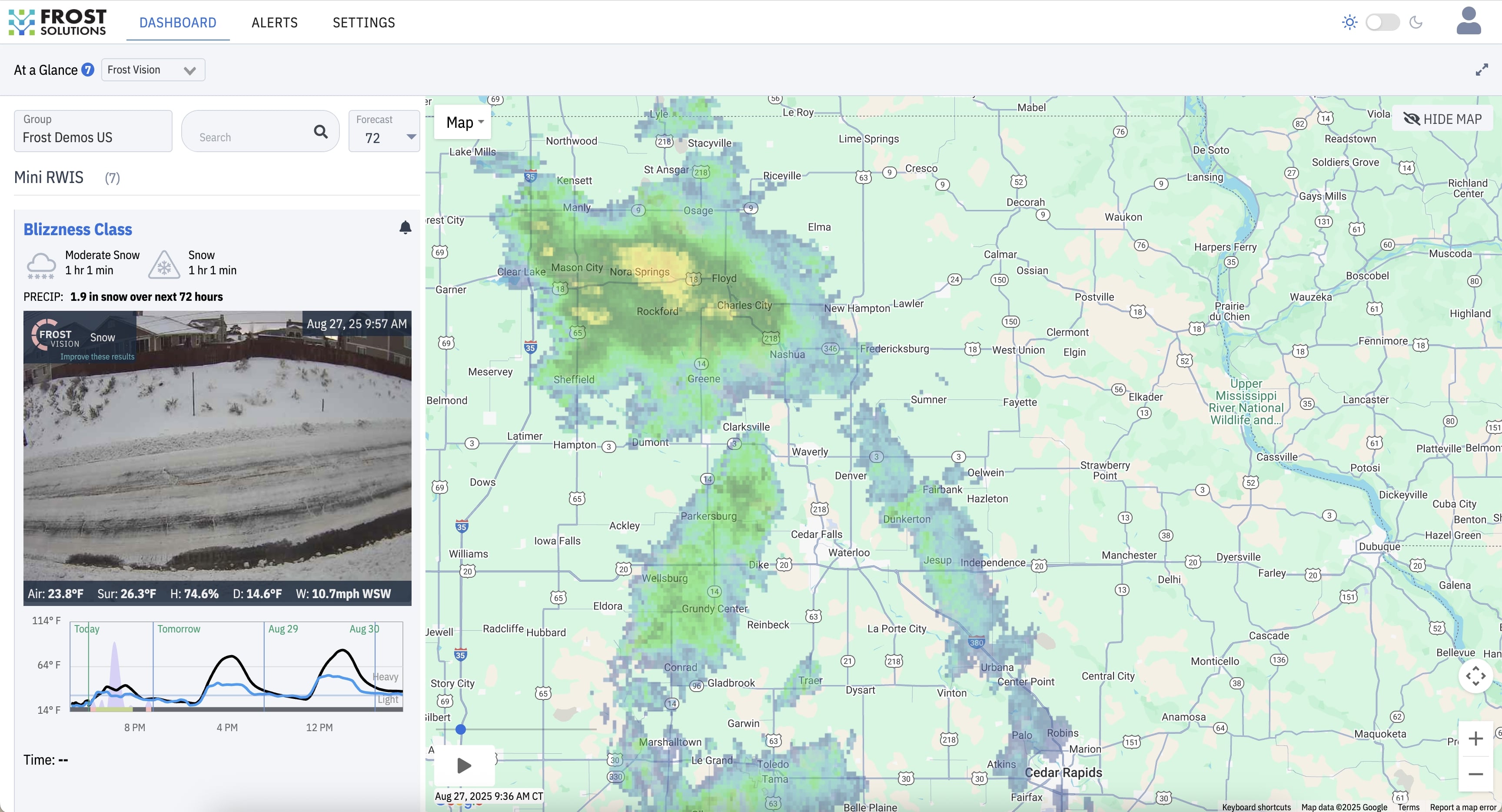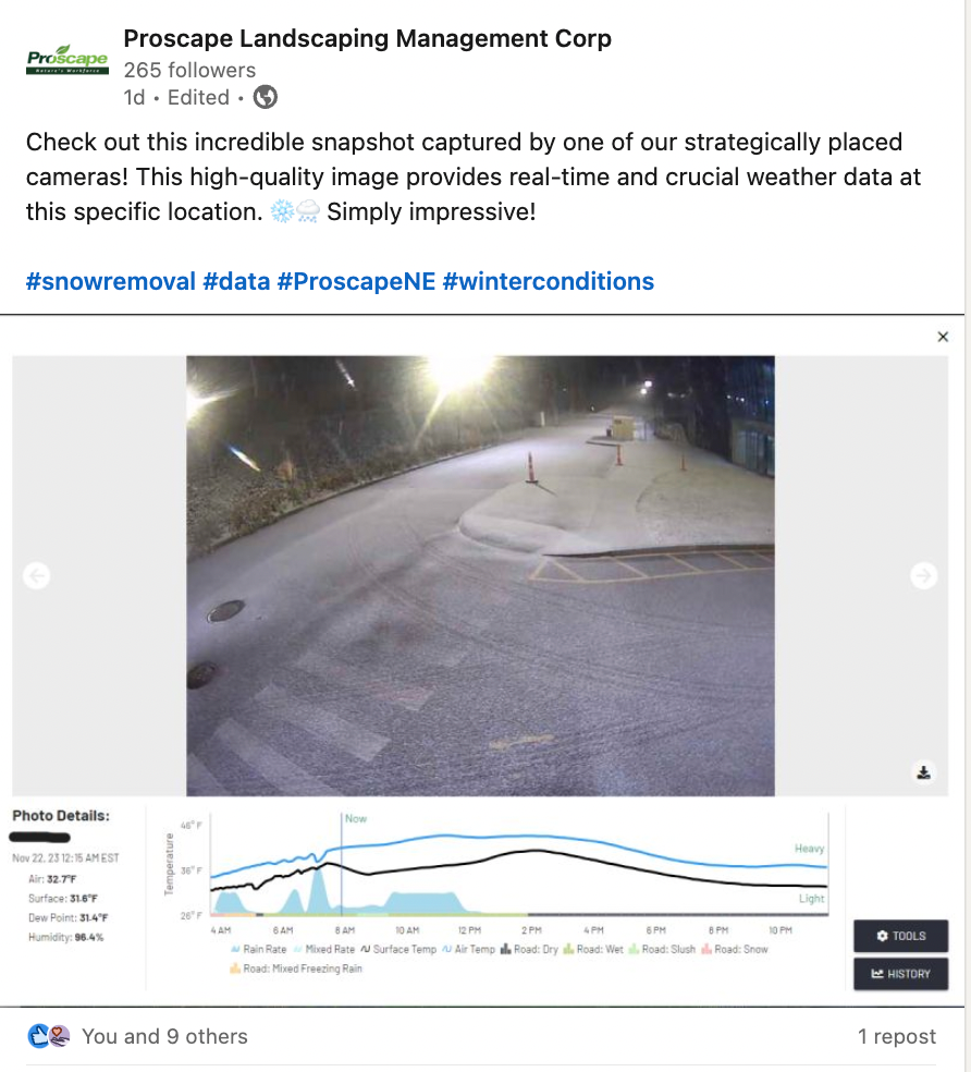 Live, site-level data on pavement temperature, humidity, dew point, and frost. Make better decisions based on what’s actually happening, not the forecast.