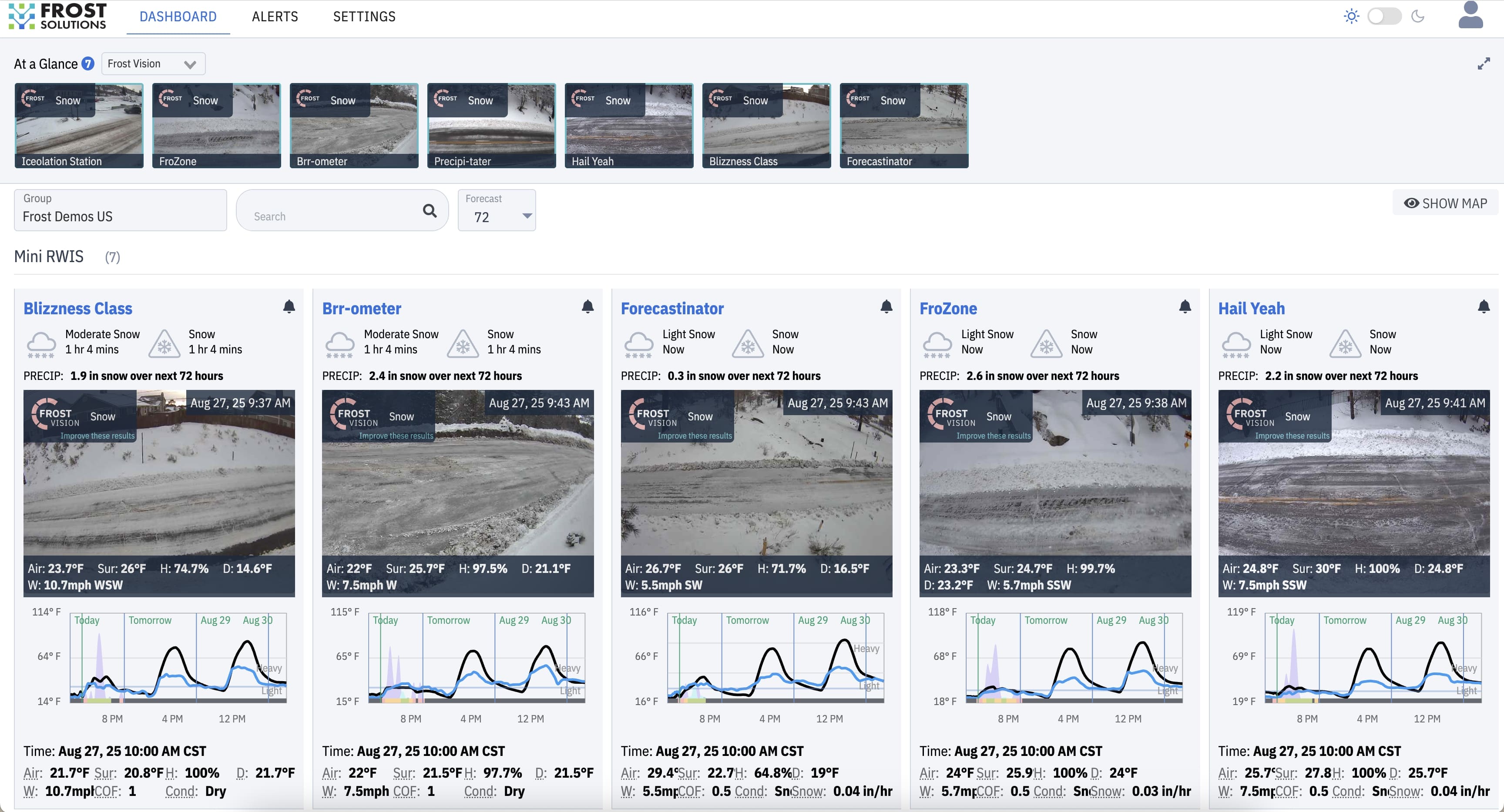 Historically, RWIS (Road Weather Information System) devices have been very expensive. Frost has created the first low-cost RWIS device that focuses on giving you more datapoints to better make snow and ice management decisions. Frost customers typically find the units pay for themselves after 2-3 winter weather events by better managing their resources, plows, and labor costs.